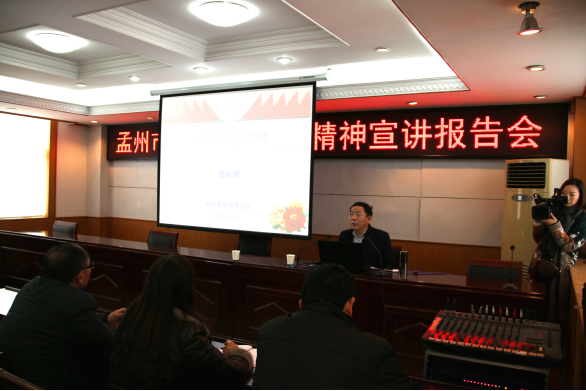 12月22号,焦作市委十九大专家宣传团成员、焦作市委党校公共管理教研部副主任、副教授范沁河,将党的十九大精神宣讲带到了孟州市人社局,为人社局全体党员干部职工做了党的十九大精神宣讲。