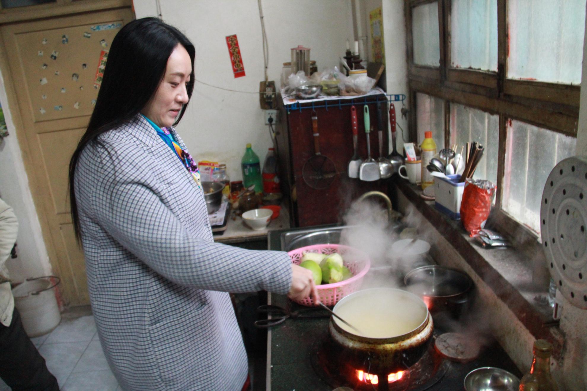 一行人首先来到南庄村村委会,就扶贫工作进展现状开起了座谈会。驻村第一书记聊起8家贫困户情况如数家珍,听着支部帮扶8家贫困户的脱贫故事,机关第一党支部成员韩明华露出欣慰的笑容。随后一行人来到贫困户家中走访,为老乡们送去节日的问候。在老乡家中,大家围坐在堂屋闲话家常,听乡亲们讲讲这一年来生活上发生的变化,聊聊还有哪些实际困难没有解决。聊着聊着到了饭点儿,早有人围着灶台忙活起来。煮点粥、切点菜——既然是走亲戚,咱就帮着干点活。